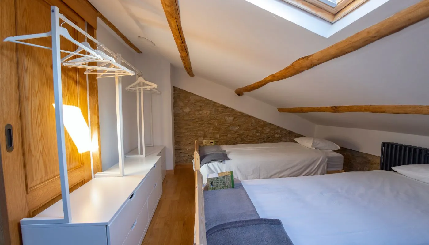 baño privado, y la otra con una cama de matrimonio de 135 cm. Además, hay una